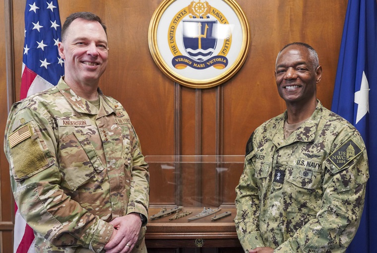 U.S. Naval War College (NWC) President Rear Adm. Darryl Walker met with Director for Joint Force Development, Joint Staff, Lt. Gen. Dagvin R.M. Anderson during a visit to the college’s Newport, RI campus, Jan. 29.